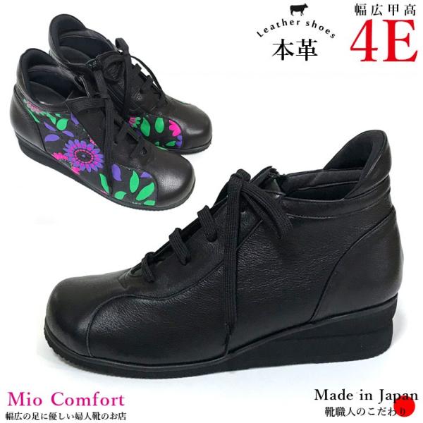 Amazon 日本製 本革 靴 レディース コンフォートシューズ 4e 黒 カジュアルシューズ 軽量 レザーシューズ 幅広 甲高 コンフォートスニーカー ノーブランド品 スニーカー